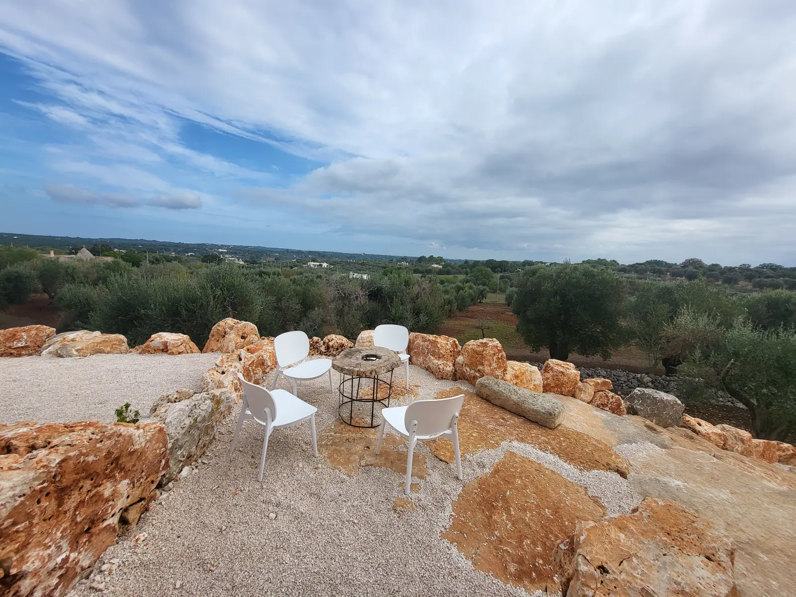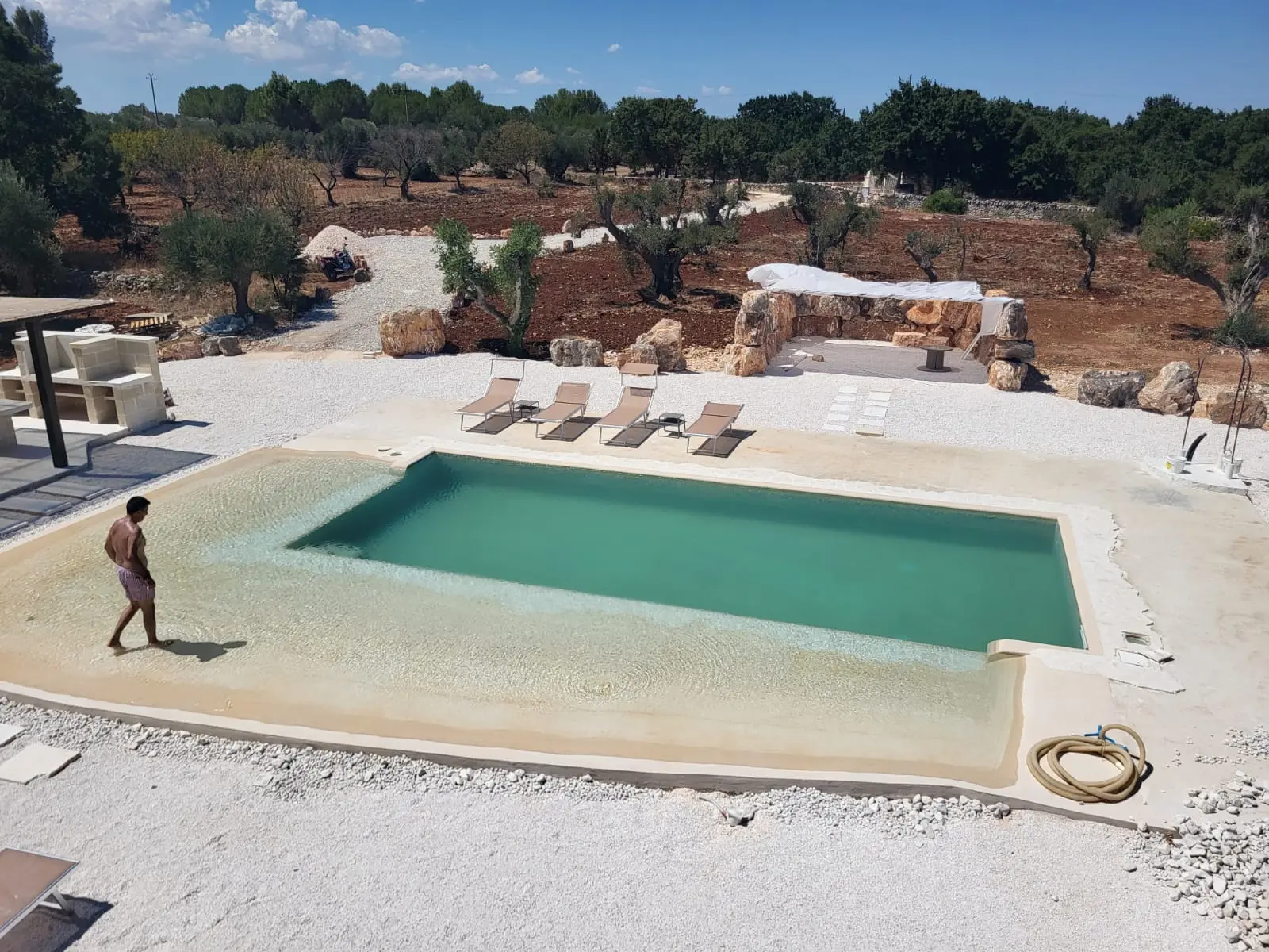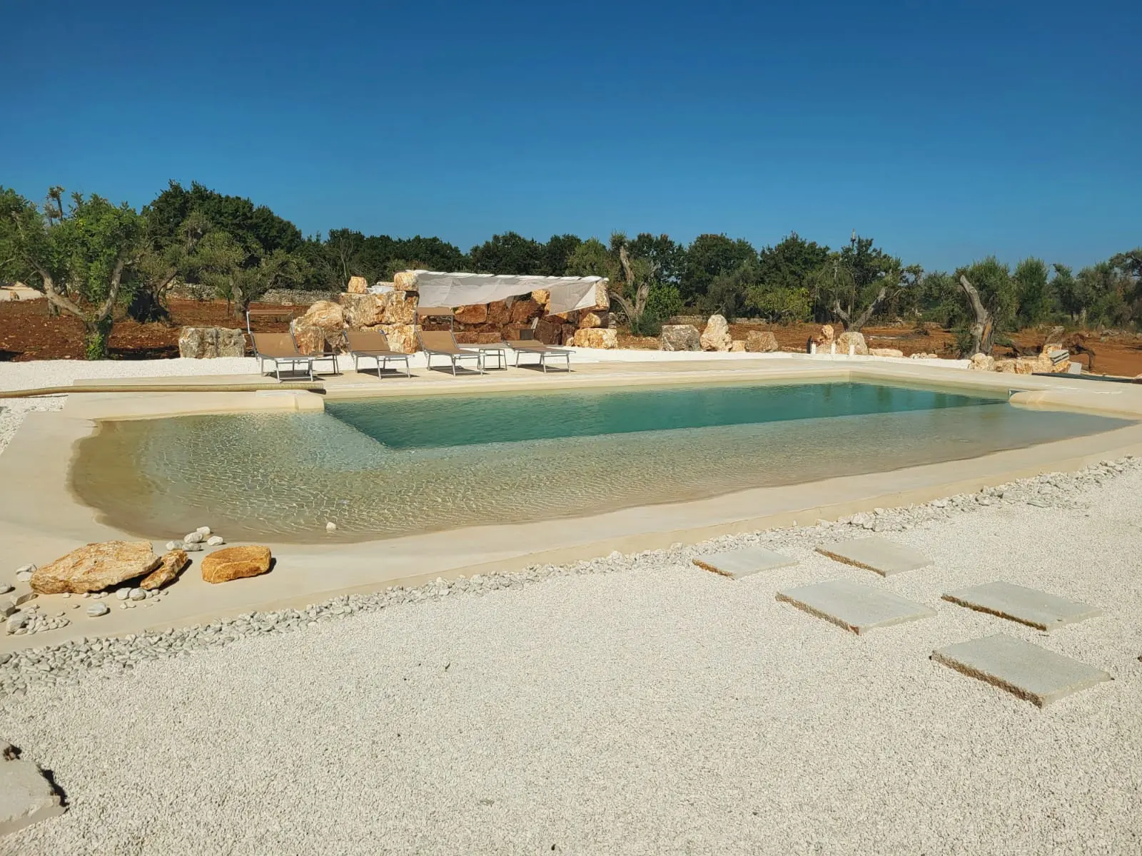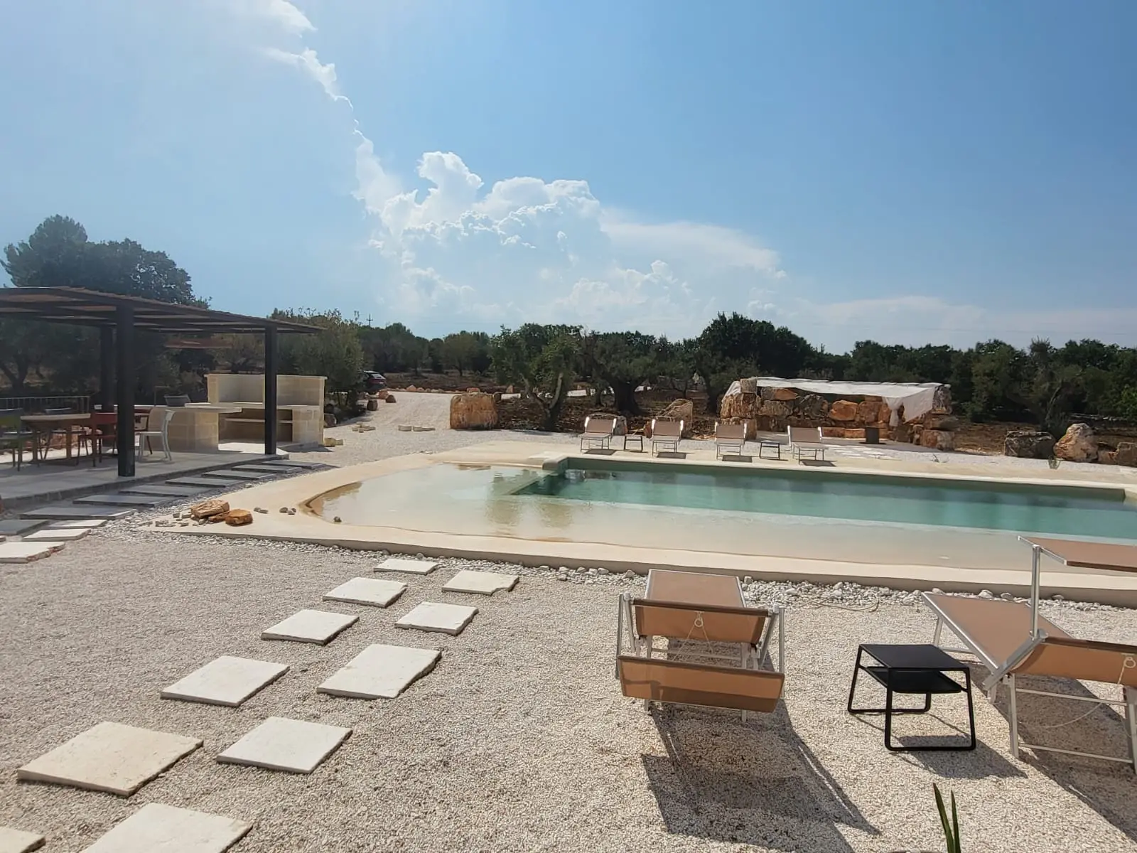 Affianco alla piscina c’è la “ stonehenge ” di Torre Panta rei, un area di rocce coperte da una tettoia dove si può godere della zona d’ombra.