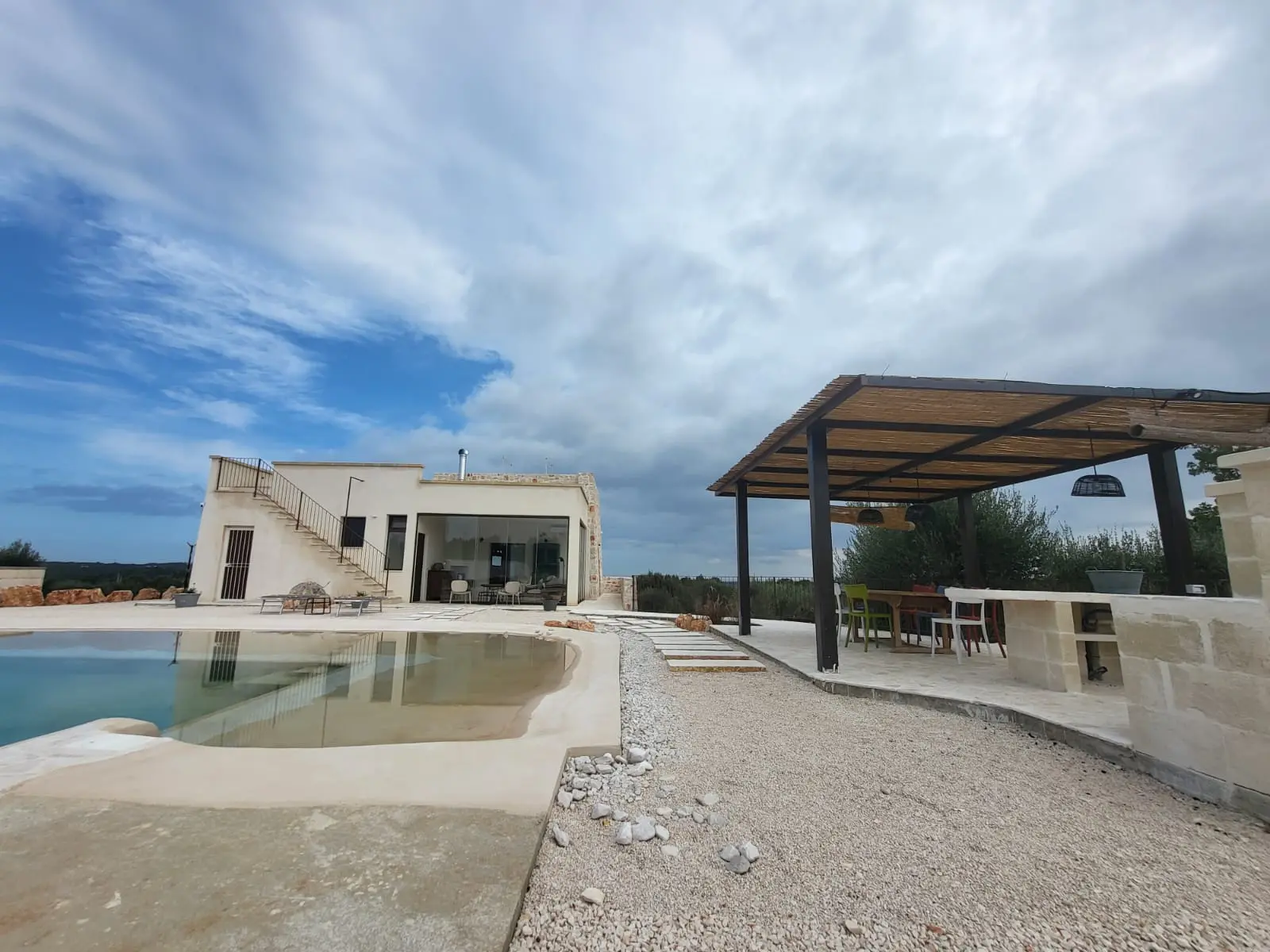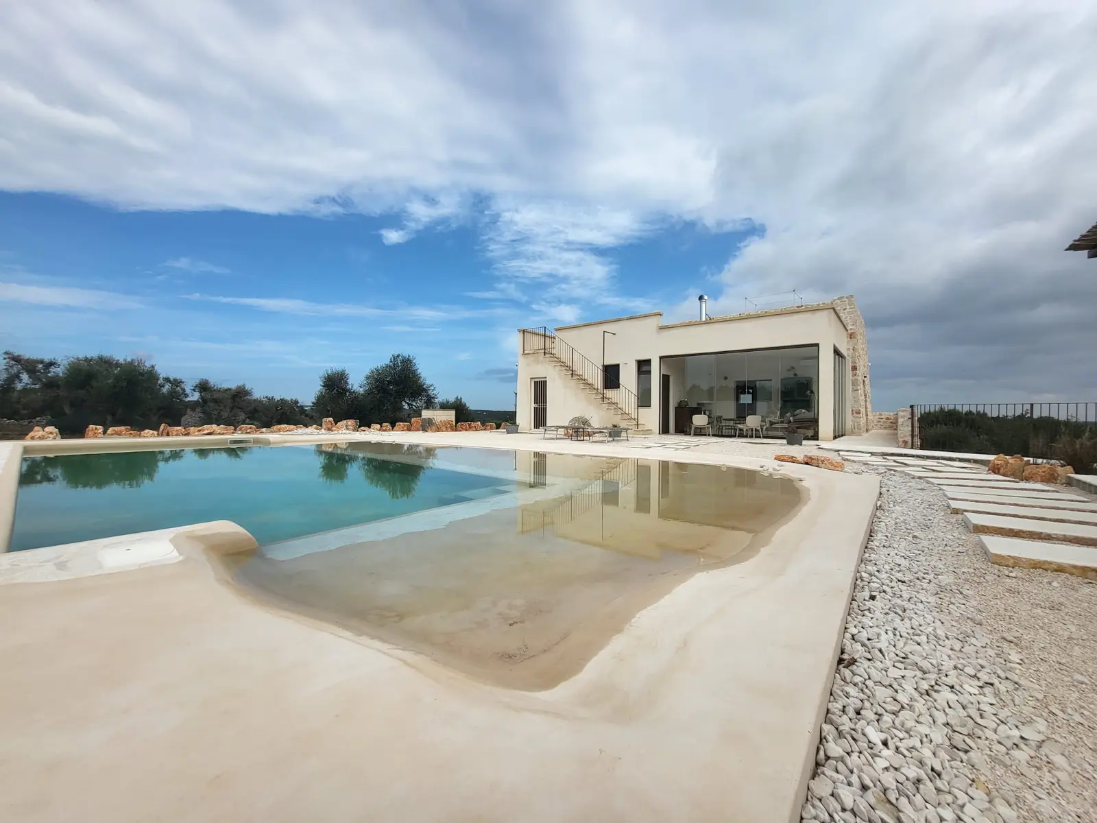 Nel cuore della Valle d’Itria sul territorio di Ostuni, troviamo questa magnifica villa indipendente con una stupenda vista panoramica e la sua particolare e generosa piscina con spiaggia.