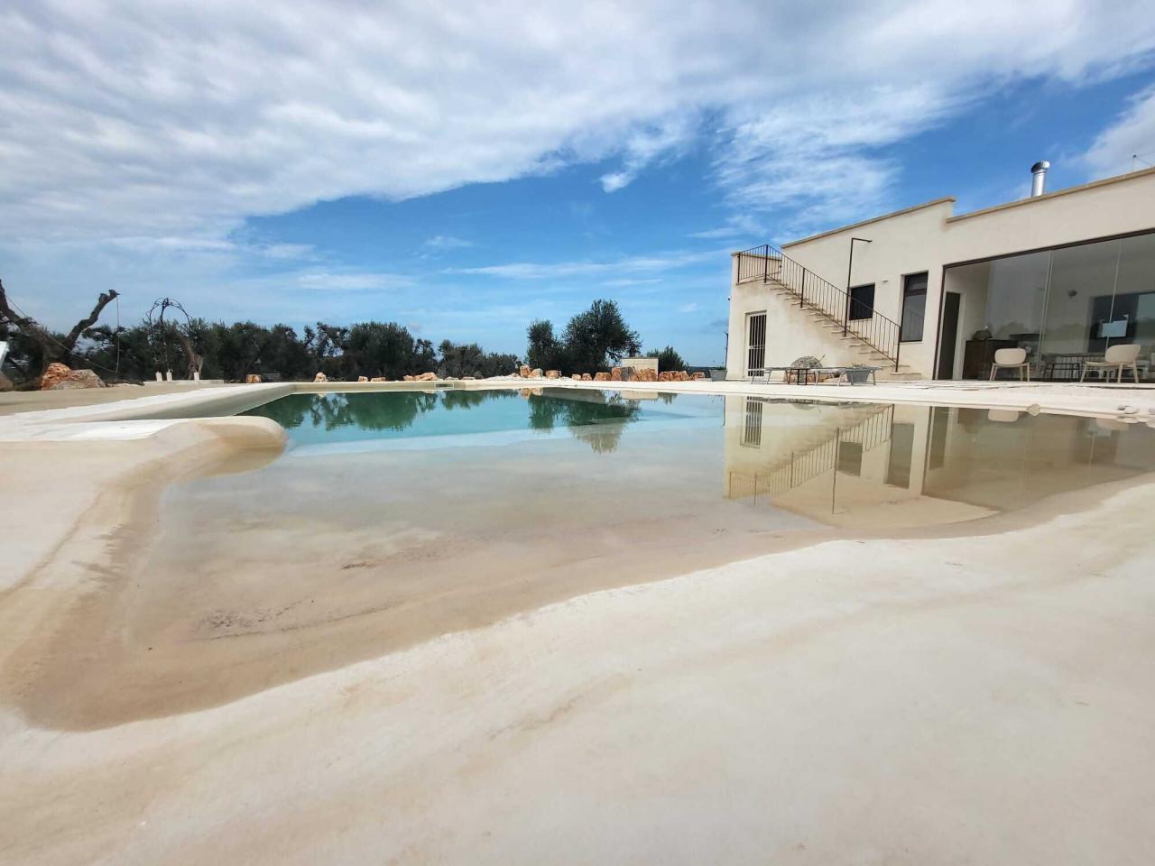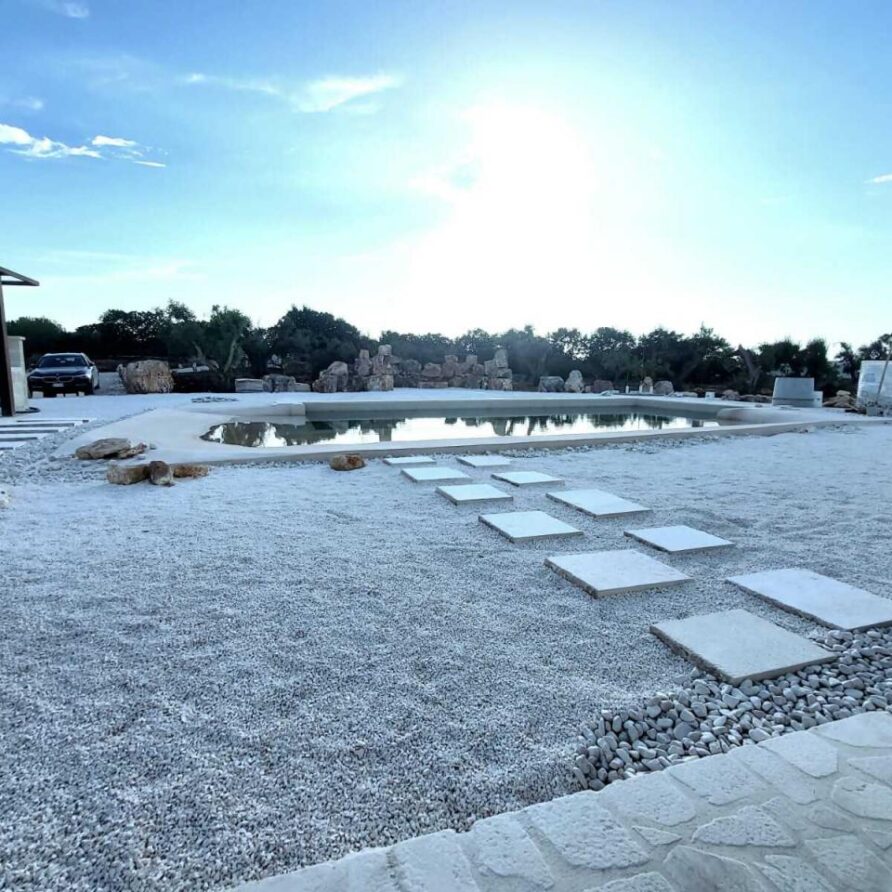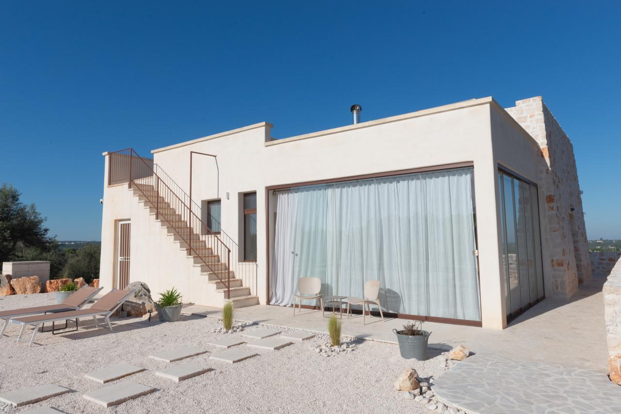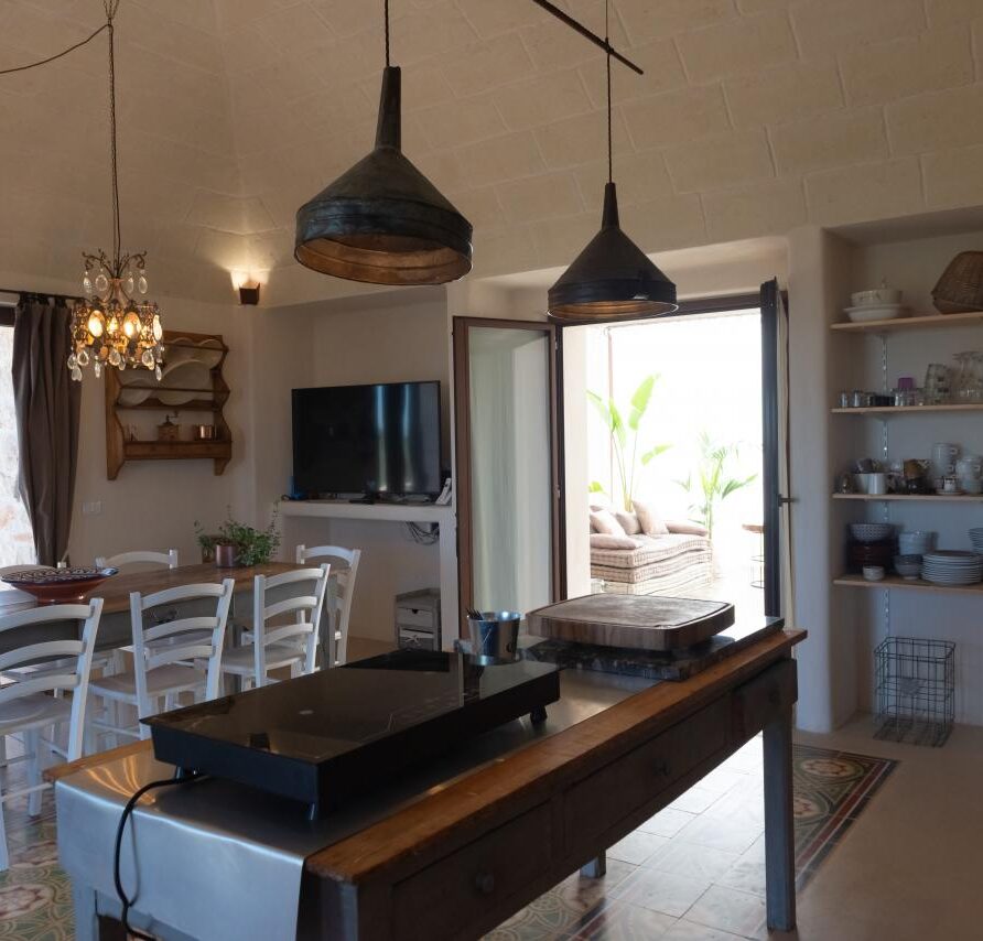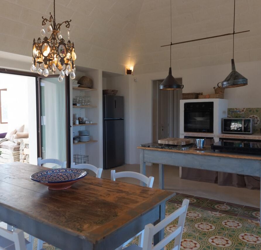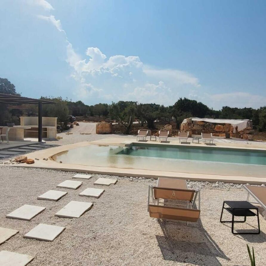 In the heart of the Itria Valley in the Ostuni countryside, we find this magnificent detached villa with an infinity pool. Our red soil gives way to a white limestone paving that occupies much of the garden, adjoining the house and framing the pool. The property’s impressive and tasteful interiors are exquisitely crafted and designed. The brand-new furnishings create the perfect ambiance for the spacious living area, where large windows overlook the magnificent pool next to the pool. The kitchen is fully equipped, and the sleeping area features four double bedrooms and four bathrooms. The entire property can comfortably accommodate eight people. We are delighted to host you and ensure you experience a dream vacation.