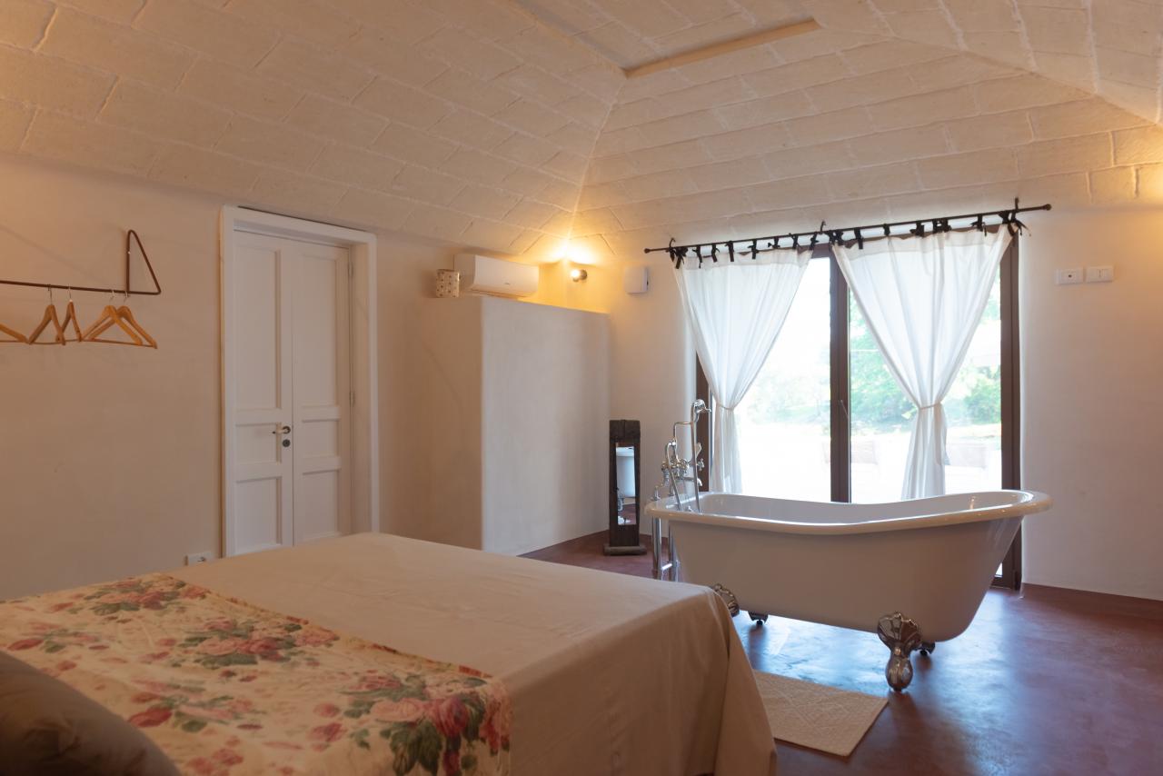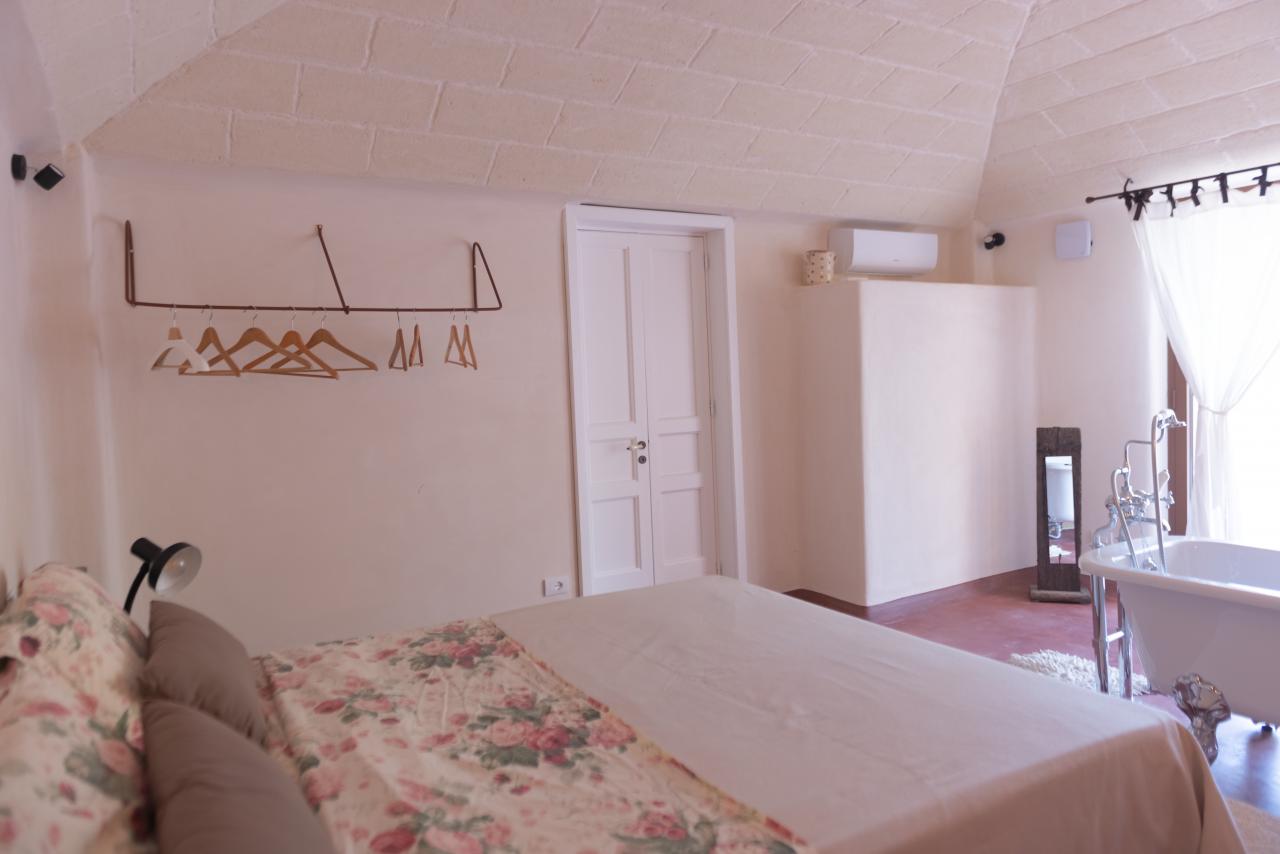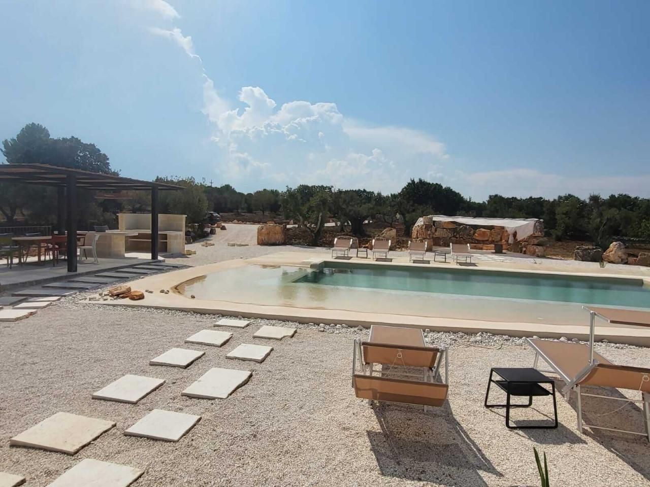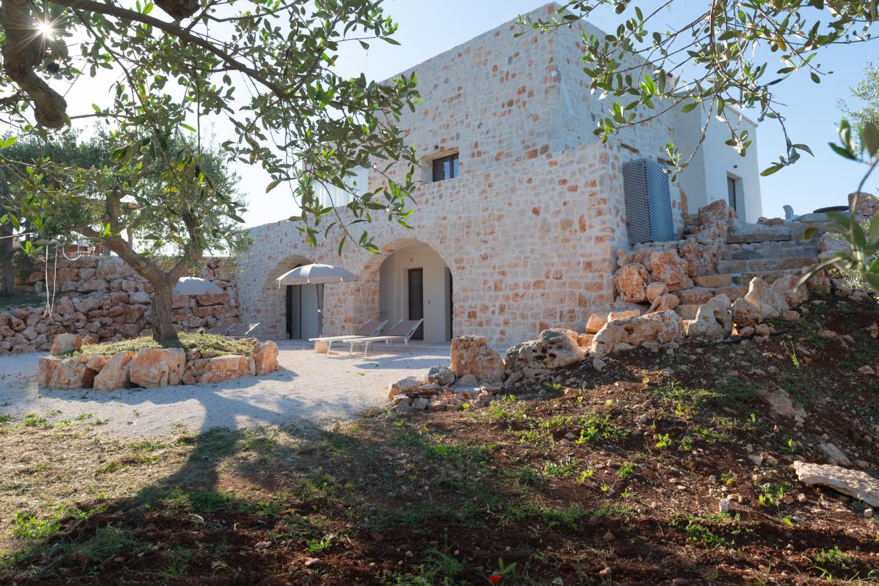 In the heart of the Itria Valley in the Ostuni countryside, we find this magnificent detached villa with an infinity pool. Our red soil gives way to a white limestone paving that occupies much of the garden, adjoining the house and framing the pool. The property’s impressive and tasteful interiors are exquisitely crafted and designed. The brand-new furnishings create the perfect ambiance for the spacious living area, where large windows overlook the magnificent pool next to the pool. The kitchen is fully equipped, and the sleeping area features four double bedrooms and four bathrooms. The entire property can comfortably accommodate eight people. We are delighted to host you and ensure you experience a dream vacation.